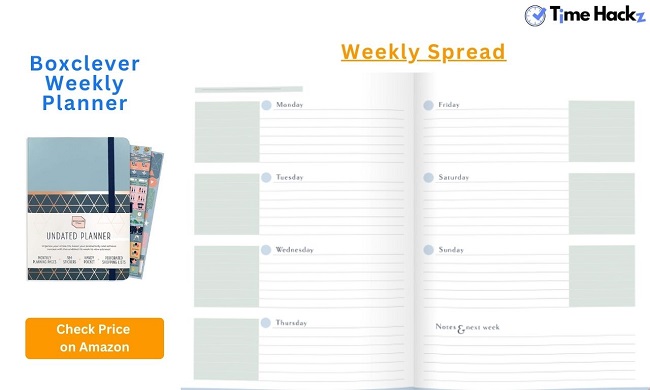 Are you looking for something beyond time management and productivity? You can think further with Boxclever Weekly Planner. With this planner, you can do budgeting and make shopping lists. Also, you can do planning for Christmas. Social and family plans are in one place. It is a simple planner with a minimalistic design. Have plenty of space each day to write things in detail.