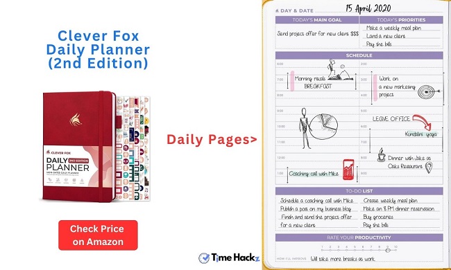 After a huge success, Clever Fox Daily Planner released its second edition, removing the previous version’s shortcomings. If you are looking for a premium quality planner, the Clever Fox Planner is right for you. Colorful Layouts and multiple features will help you plan your days more joyfully. Aside from daily planning, you can plan your goals, manage to-do lists, track habits, reflect on your performance, and be motivated by gratitude practice and affirmations. You can even give this planner as a gift because it comes with a fascinating gift box.