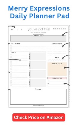 Daily planners are excellent for organizing and planning your day-to-day tasks. Also, be motivated for daily personal development activities like gratitude practice, habit development, and fitness tracking. Here are five daily undated planners listed below.