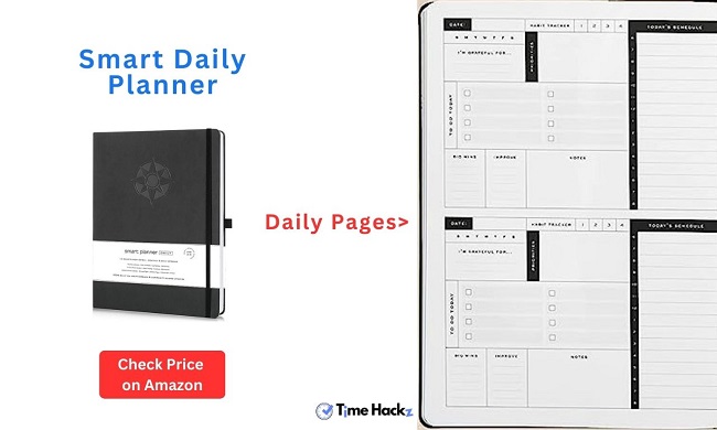If you are looking for an undated daily planner with notes for brainstorming, this is the planner for you. Smart Daily Planner covers 52 weeks. You can use it for a year and start whenever you want. Planner is designed with high-quality materials and scientifically proven layouts. Aside from daily task management, the planner helps you stay on track to achieve your goals. Smart Daily Planner lets you plan your month and reflect on your daily and weekly performance. It allows you to be organized and focused while living a balanced life.