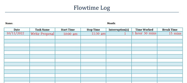 Before you begin to work and start tracking time, you need to create a timesheet to record time and your activities. It is a flowtime log or journal.