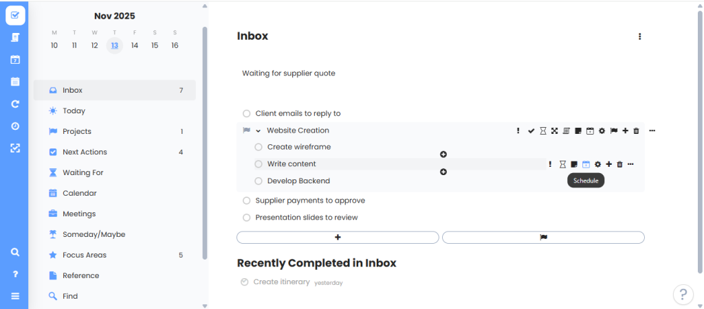 Here are is an example of GTD Inbox taken in Amazing Marvin app.