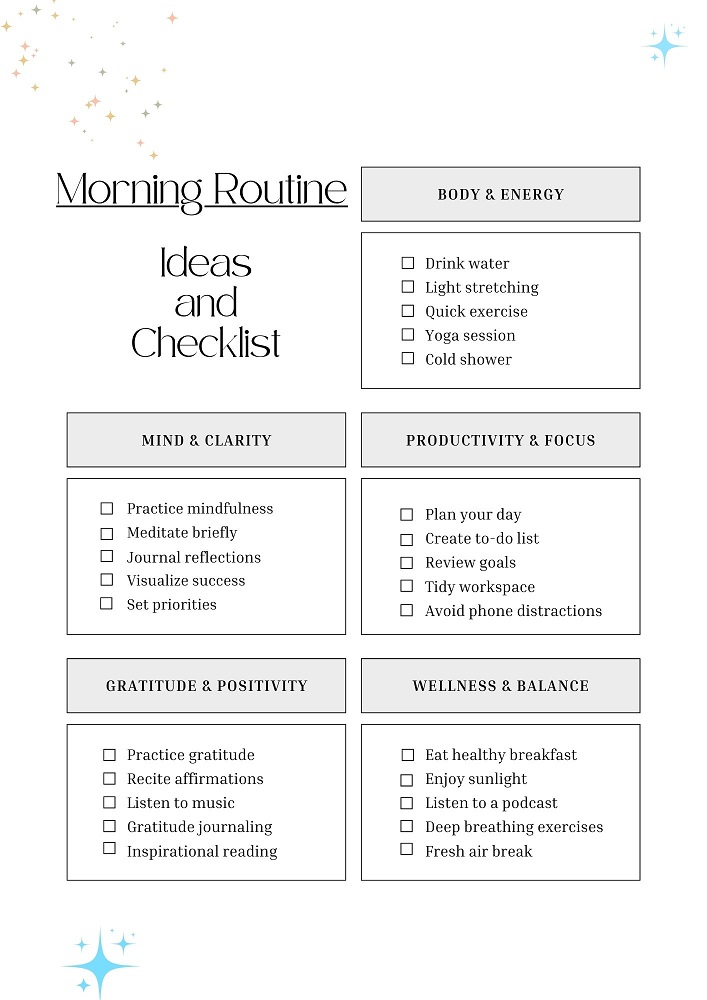 Not sure what to include in your morning routine? Here are simple, practical ideas to get you going: